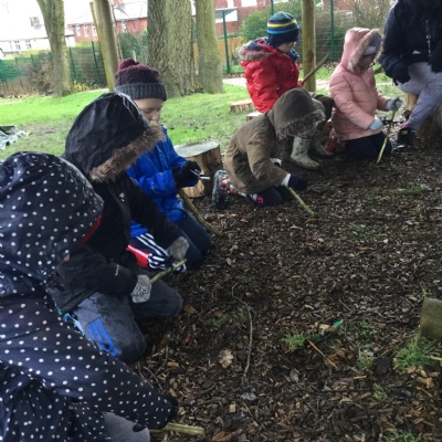 The Forest School ethos is built around a respect for our pupils, encouraging them to use their own curiosity and insight to enhance and lead their own learning. Play is at the heart of this ethos and children are given the opportunity during sessions to be free to play and explore the environment. Forest School steps away from the normal process of rigid, planned activities and instead ventures collaboratively into the realms of the unplanned, unexpected and unlimited. Being outdoors is central to supporting this dynamic approach to learning for example the seasonal changes provides our pupils with an infinite source of learning that heightens all of their senses including, smells, textures, sounds, tastes as well as a range of changing visual stimuli. These outdoor experiences enable our pupils to build their own resilience whilst enhancing their continued and creative engagement with their peers.
